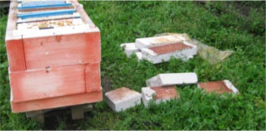 Bill Summers, who made his own hives, was perplexed to find the roof off one of the hives when he went to check them on July 25. It is thought the attack happened overnight and left the bees exposed to a rain storm. The hives are sited at Hosey Bridge.