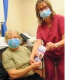 Here is Dr Madeleine Ford administering the jab to the first two Blandford residents receiving their vaccinations at Whitecliff…