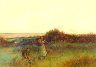 A watercolour drawing of children out walking in late summer is one of a collection of pictures in the…