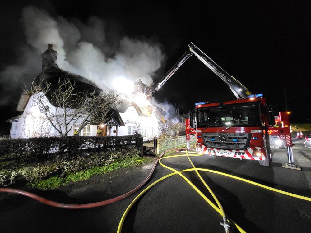 “Crews have cut fire breaks in the thatch and are using breathing apparatus and hose reels to extinguish the fire,” a DWFRS spokesperson said at that time.