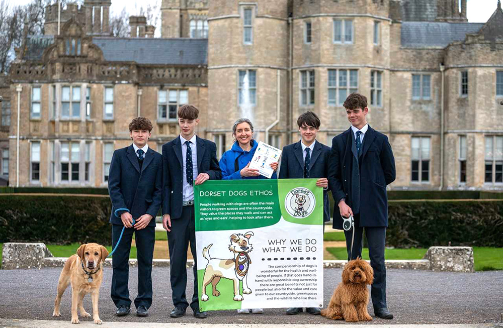 As part of its support for more than 70 local charities, Canford pupils and staff have been helping Dorset Dogs creating resources for use in their promotional materials. Sarah Allen, Education co-ordinator, visited Canford in March to thank pupils and staff for their efforts and support with several four legged friends owned by Canford staff joining in the photoshoot. Also displayed in the picture are some of the illustrations pupils have been working on.