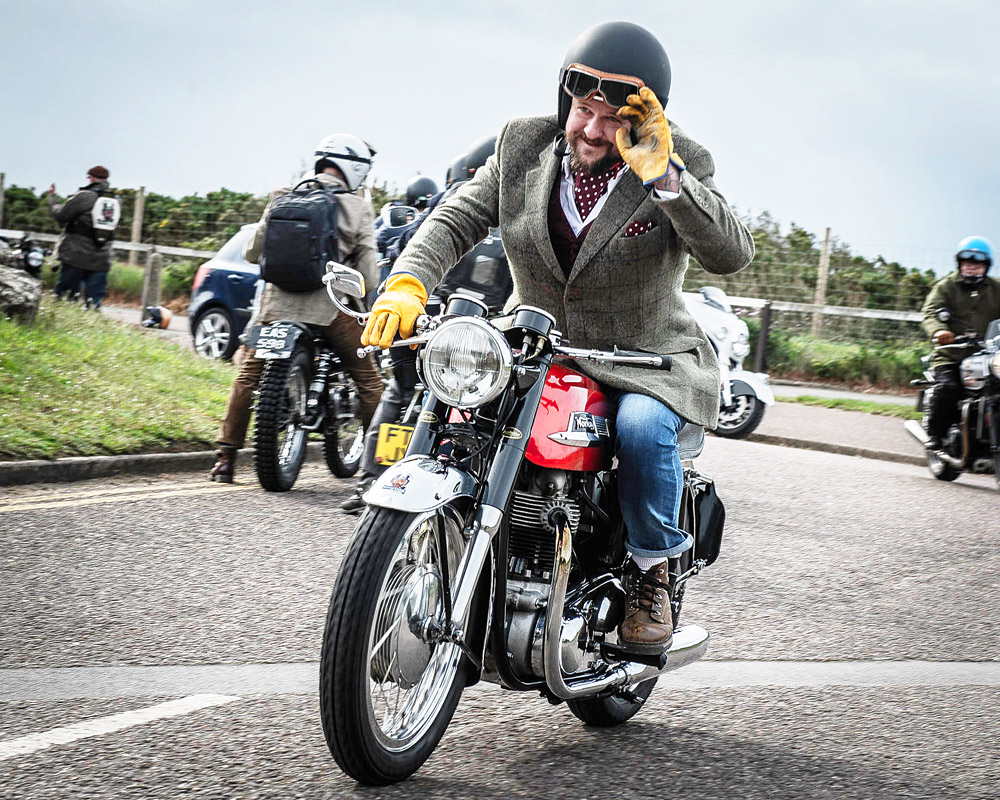 A biker in tweeds and a cravat would be a rare sight, so imagine more than 600 of them riding through Dorset.