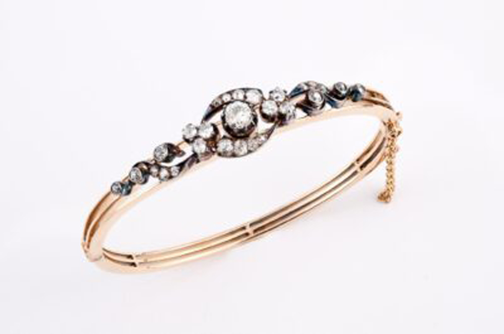 There is a great selection of jewellery, silver and watches in the Charterhouse two day May auction including an Edwardian diamond bangle.