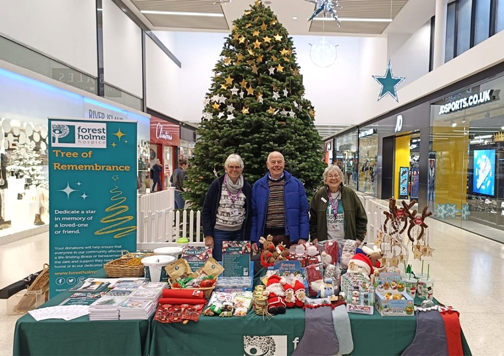 Shoppers in Poole can take time out of their busy schedules to dedicate a Light up a Life star on Forest Holme’s iconic Tree of Remembrance in memory of a loved one, whether they were cared for by the local hospice or not, in exchange for a donation towards the charity.