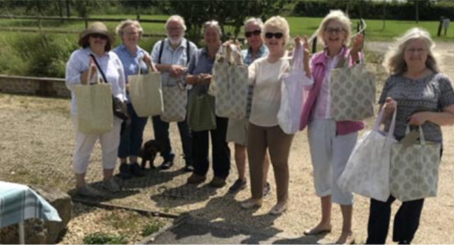 The village of Leigh has recently formed a climate emergency group, which is encouraging villagers to do what they can. The group has used recycled cotton to make shopping bags which they have filled with useful products, including toilet paper, plastic-free cleaning samples and bags for loose fruit and veg, as well as information leaflets and suggestions. They handed them out at the village market to everyone who signed up to their cause.
