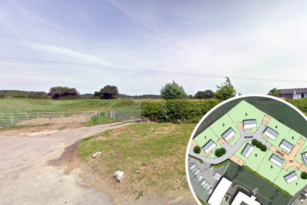 It says the land was formally the rear gardens of properties on the road, one of which is a barn that is set to be converted to two homes.