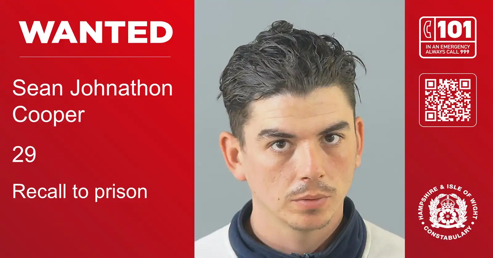 POLICE are hunting Sean Johnathon Cooper – who is wanted on a recall to prison – and believe he is in Dorset or Hampshire.