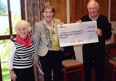The president of Wimborne Bowls Club, Mike Skipp, presented a cheque for £1,070 to Rae Cotton and Carol Head,…